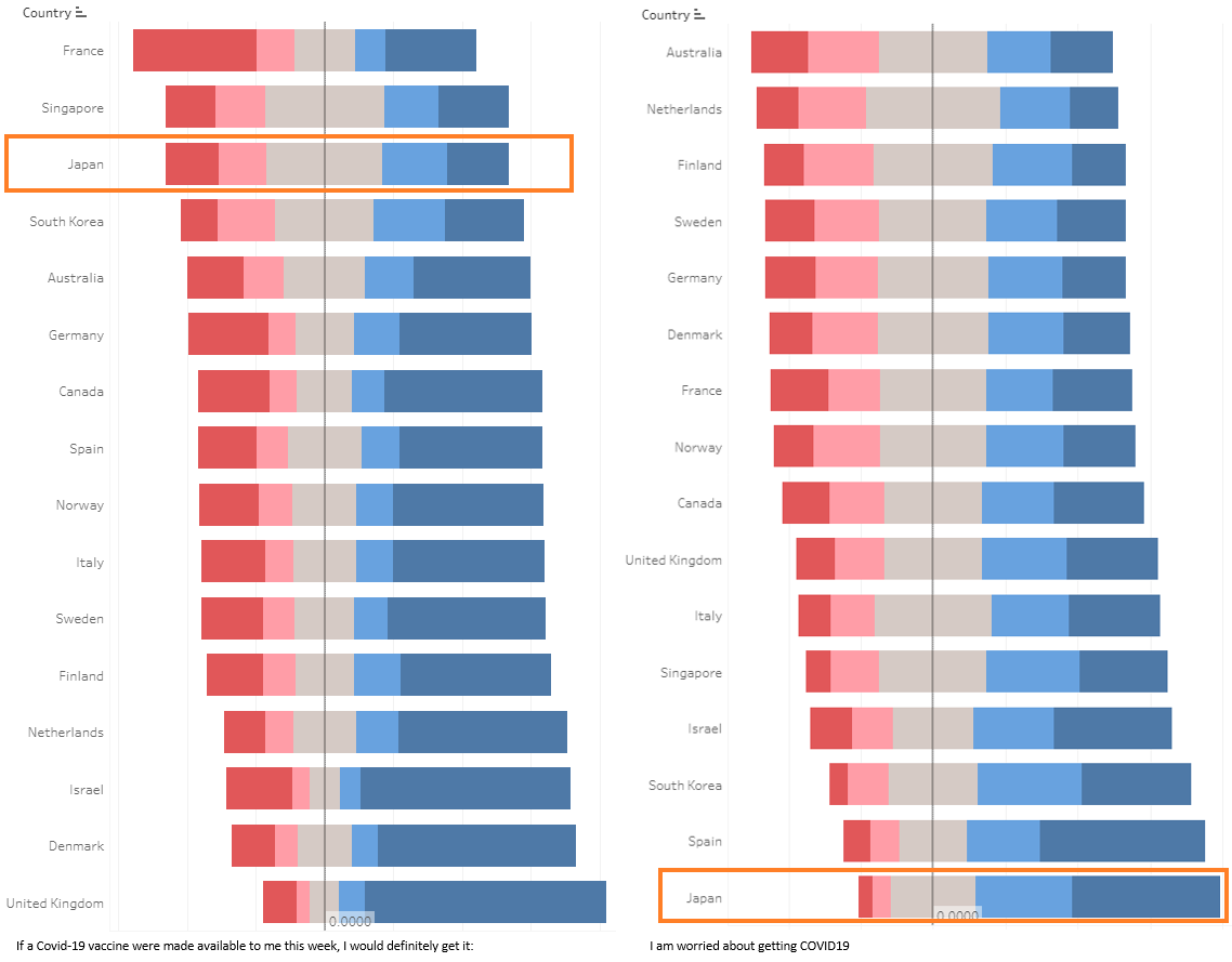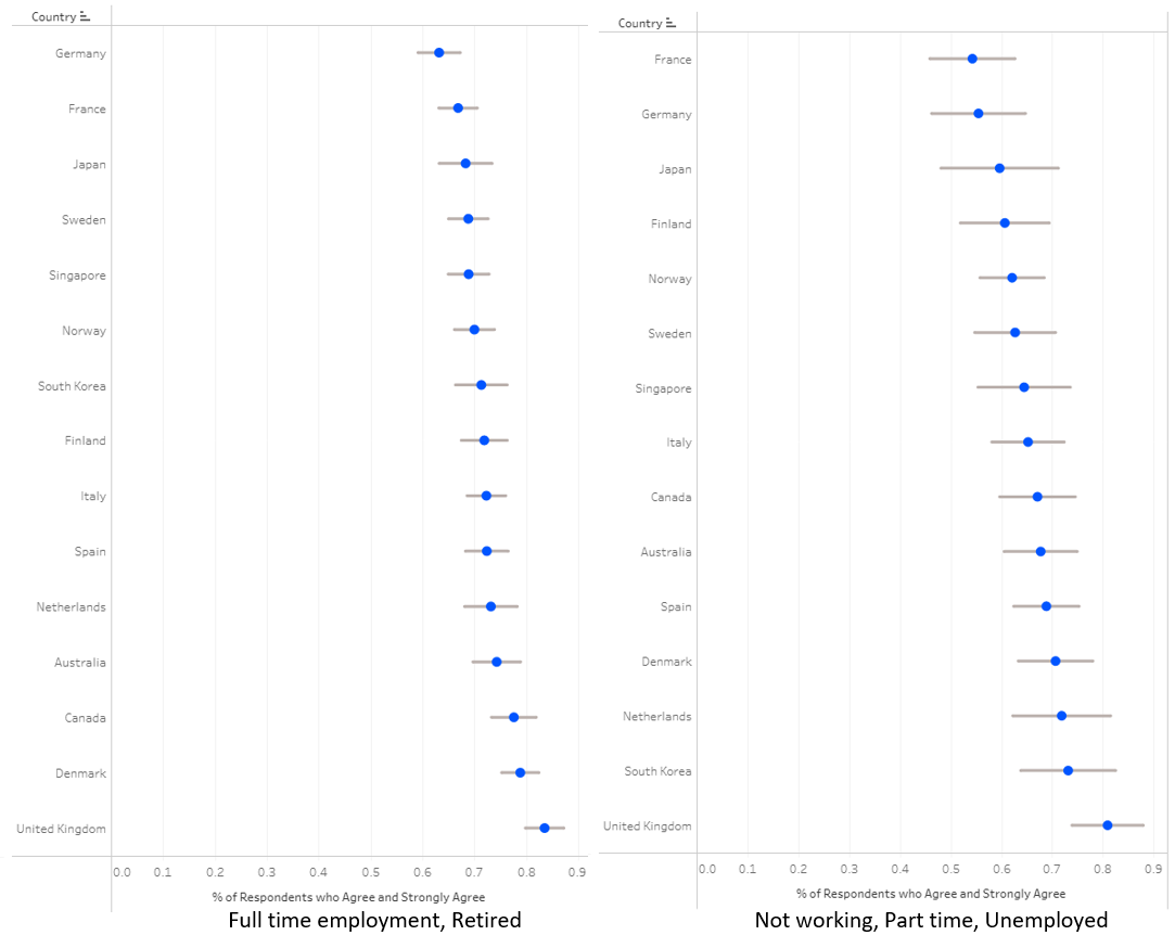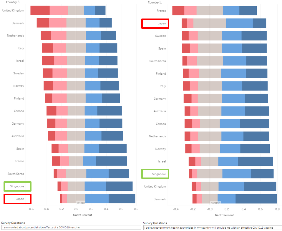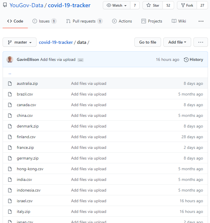 From the upload history of the repository, it was observed that the files were last updated at different period ranging from few hours ago to 5 months ago. Since the research is to focus on survey conducted in January 2021, files updated after and before January 2021 are excluded. The data of Australia, Canada, Denmark, France, Germany, Italy, Japan, Netherlands, Norway, Singapore, South Korea, Spain, Sweden, and United Kingdom were used for the visualisation.