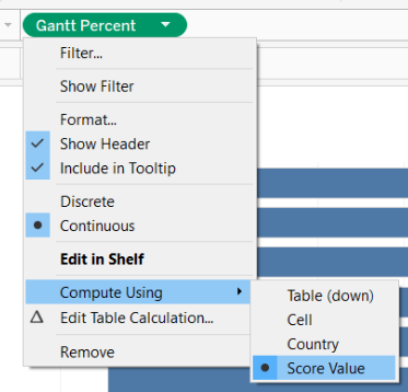 From the dropdown menu of Gantt Percent, select Compute Using > Response