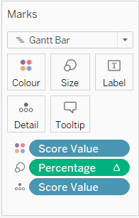 Next, change the chart type to Gantt Chart, drag from the left panel Response into Color, and Percentage into Size