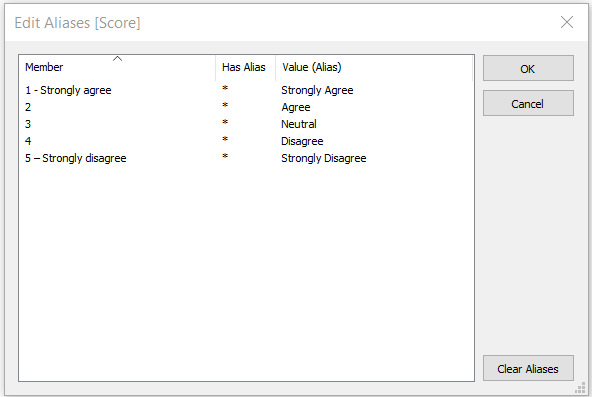 Next, double-clock on the column names and change it to “Survey Questions” and “Score” as shown.