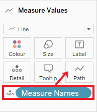Under the Measure Values setting, change the visualisation type to Line. Drag Measure Names into Path, and another Measure Names from the left panel to Colour